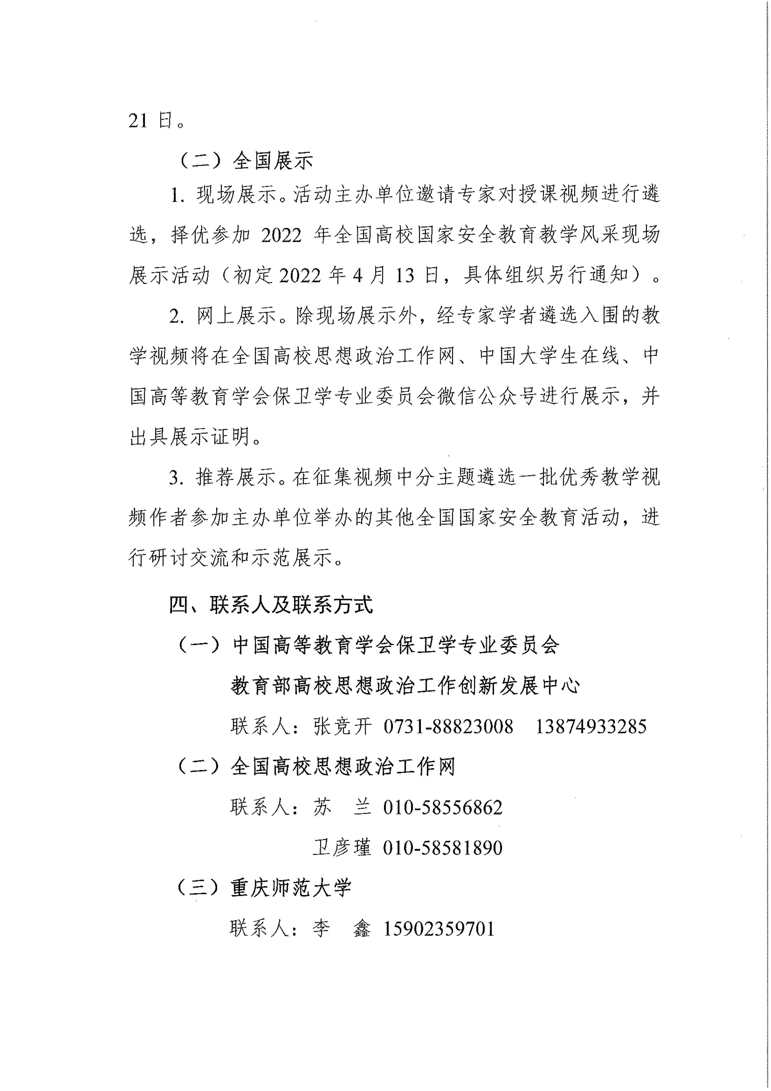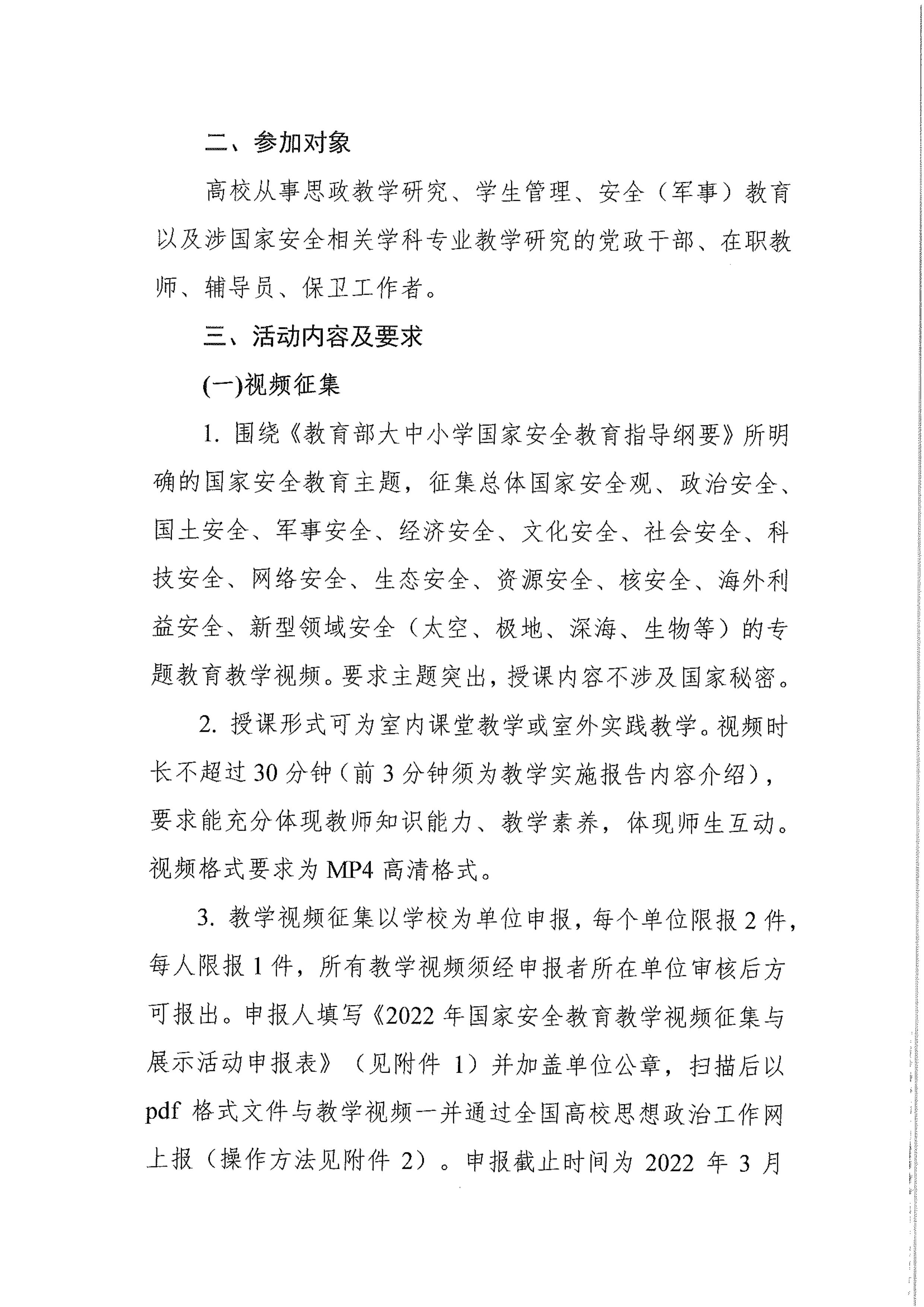 关于开展国家安全教育教学视频征集与展示活动的通知