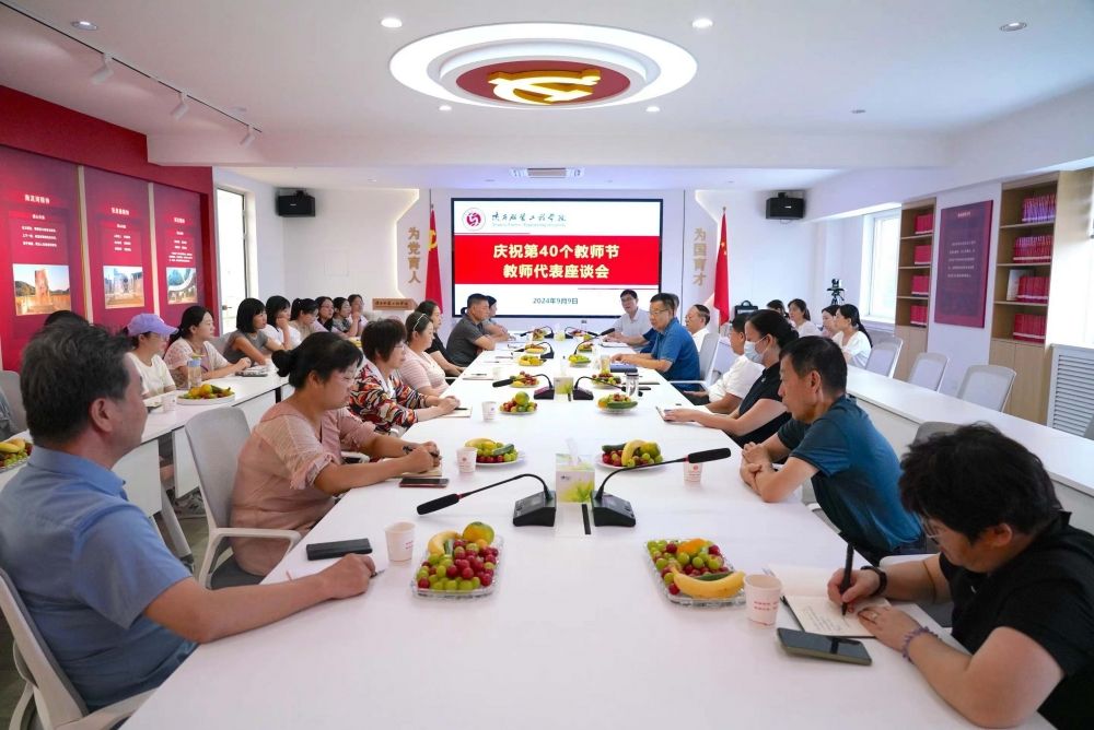 陕服新闻网讯(李文斌)秋菊溢彩,丹桂飘香。 在中华人民共和国建国75周年华诞、传统中秋佳节来临之际,恰逢第40个教师节,9月9日,我校以“大力弘扬教育家精神,加快建设教育强国”为主题,在行政中心326会议室召开教师代表座谈会。校长姜寿山主持,党委书记王岗、常务副校长黄新民出席,各学院教师代表20余人参加。9月10日,学校党政领导班子成员深入二级学院参加各二级学院和分工会组织的教师节教职工座谈会,旨在进一步关切教职工需求,充分听取教职工关于对学校改革发展、教师成长、生活福利等方面的意见和建议。