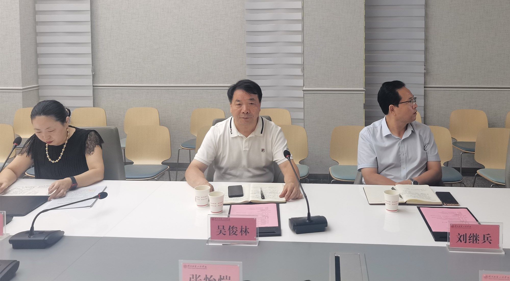 随后召开的座谈会由西咸新区宣传文旅局副局长杨彬彬主持。我校副校长吴俊林向调研组一行介绍了我校30年办学历史和辉煌建设成就,以及近年来在教育教学改革、师资队伍建设、服务陕西文旅产业发展等方面取得的优异成绩。服装学院执行院长徐彬、艺术设计学院执行院长时晓楠聚焦我校服装学院、艺术设计学院办学特色及近年来与地方文旅成功合作融合发展的成功案例作了补充介绍。