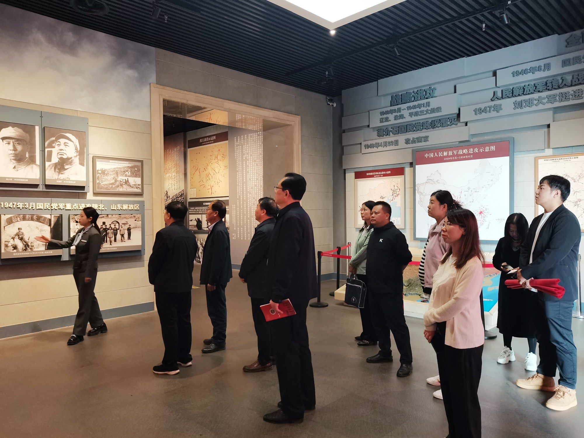 在纪念馆,大家一边认真聆听扶眉战役历史背景、战斗过程及历史意义的详细讲解,一边用心感受着革命先烈在艰苦卓绝的斗争中不畏艰险的英勇气概。通过展厅的历史图片、实物展示,全景式观看扶眉战役的历史画卷,大家仿佛回到那个战火纷飞、硝烟弥漫的革命战争年代,深刻体会到老一辈无产阶级革命先烈们为了国家独立、民族解放所付出的巨大牺牲,感悟到他们抛头颅、洒热血,用生命谱写的一曲曲壮丽英雄赞歌。