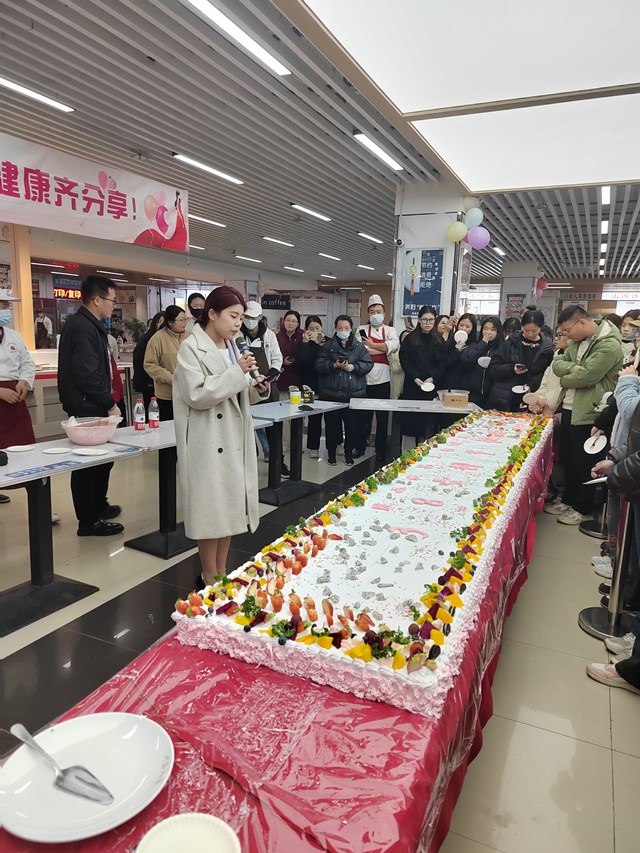 三是开展“三八国际女神节,美食健康齐分享”免费吃蛋糕送祝福打卡活动。三八节当天,全校数千名师生兴高采烈地参加了餐厅的系列活动。