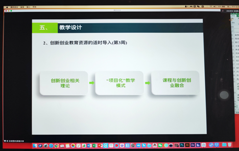 参加本次试讲的教师由各二级学院推荐、教师自荐产生,根据评委打分综合评定,聘为下学期双创课程任课教师。进入试讲环节的老师有担任专业课程近20年教学和科研经验丰富的教授、副教授,也有入职后在双创教育活动中表现突出的年轻教师。教师们以课程说课、创新思维开发训练、大学生创业模式分析、典型创业案例解析等专题切入,引用丰富实例,对理论知识进行细致讲解,积极引导学生主动参与。破壁专业界限,引入跨学科知识内容,使内容不再局限于课程与专业中,为大学生的创新创业发展积极探索新思路、新方法。