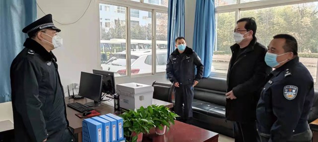 陕服新闻网讯(李文斌)元月8日下午,西安市公安局文保支队薛刚支队长来我校指导疫情防控及安全保卫工作,校长助理、学生处长、保卫处长刘继兵陪同检查。