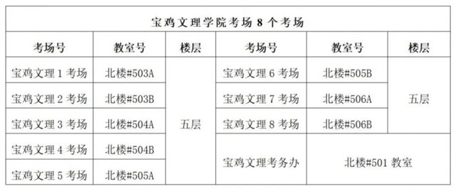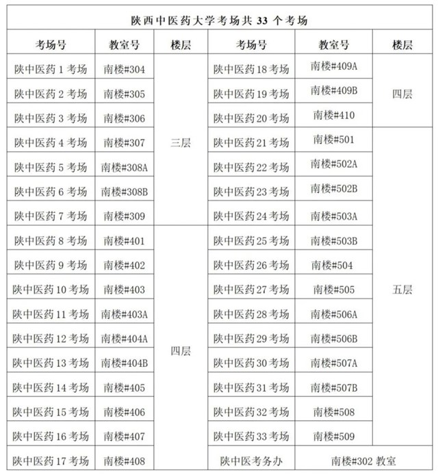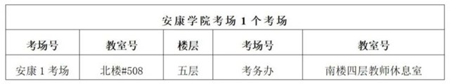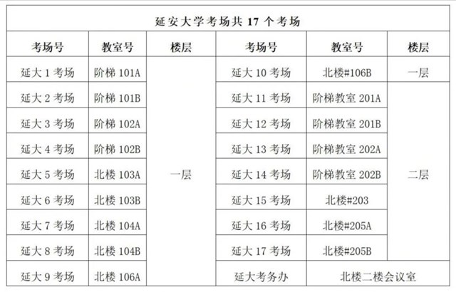 各考点院校考场对照表