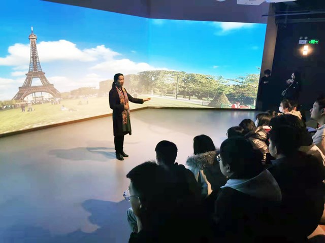 最后,我校中国传统文化研究中心主任胡鸣焕教授向同学们概括介绍了数字艺术馆的设计理念、展陈模式、展示内容、多媒体信息技术应用等内容。胡教授在授课中说:“深化课程改革,创新育人模式,全面提升育人质量,推动学校内涵建设,构建新时代无边界幸福大学,陕服一直在路上。”