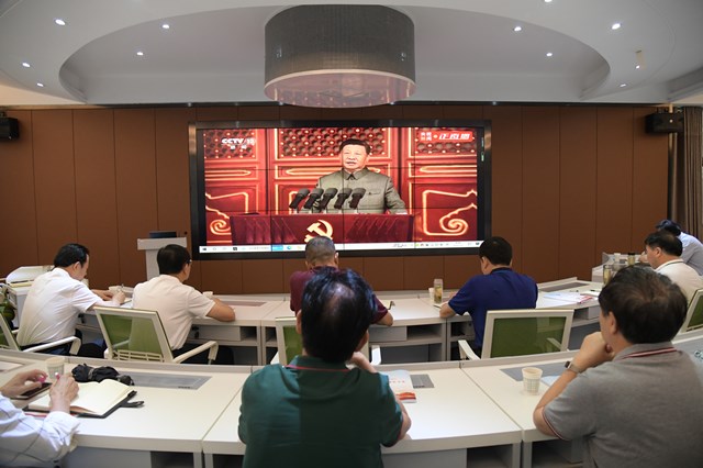 习近平总书记在庆祝中国共产党成立100周年大会上发表的重要讲话,回顾了中国共产党团结带领中国人民不懈奋斗的光辉历程,展望了党和人民事业发展的光明前景,以非常深沉的历史使命感,聚焦于党的远大理想和崇高追求。习近平总书记的讲话慷慨激昂、振奋人心,几个庄严宣告,让师生党员们前所未有的感受到了作为一名中国共产党员的荣誉感和自豪感,在师生中产生了强烈反响和共鸣,观看过程中不时传出阵阵掌声。大家纷纷表示,要认真学习、贯彻、落实讲话精神,牢记党的初心使命,向着第二个百年奋斗目标、向着中华民族伟大复兴的中国梦奋勇前进!