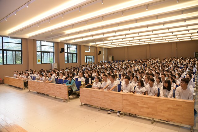 2021年上半年新接收的预备党员、党员辅导员及学生党员代表在E104学术报告厅收看直播,各二级学院师生党员在各学院多媒体教室收看直播。