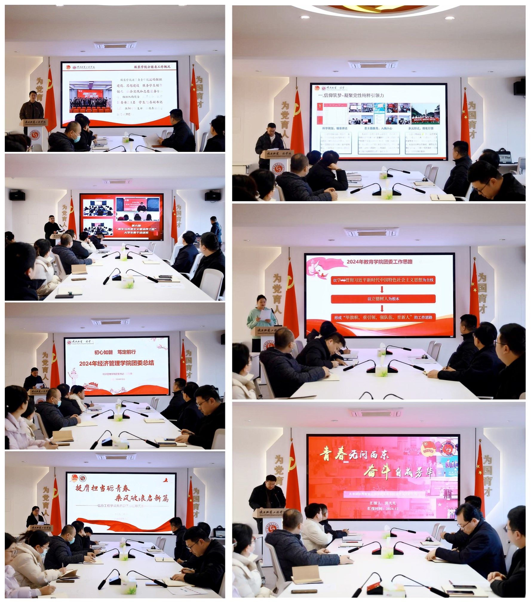 陕服新闻网讯(贾永旺)为深入学习贯彻党的二十大和党的二十届二中、三中全会精神,学深悟透习近平总书记关于青年工作的重要思想,全面梳理学校共青团工作2024年取得的成绩,总结经验、互学互鉴,推进基层团组织建设,建立健全共青团工作考核激励机制,更好地服务学校大局工作,1月6日下午,我校在行政中心326会议室召开2024年度基层团组织述职评议会。校党委副书记、纪委书记刘继兵、校团委书记董良超、各二级学院党委(党总支)副书记、团委书记、副书记参加会议。会议由校团委副书记贾永旺主持。