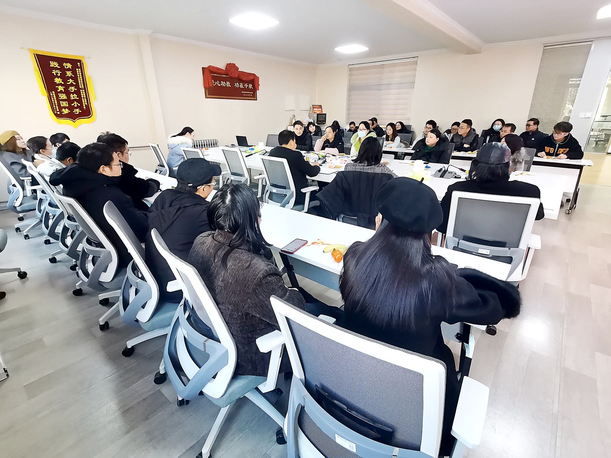 会上,翟岁兵与教师代表亲切交流,就教职工关心的教学、科研、办公条件、食宿生活、工会活动、停车等意见建议逐一认真答复,做好政策解释和思想疏导工作,指出解决方案,赢得了大家的一致肯定。他还对学校2024年的工作进行回顾,对各项改革和建设取得的成绩亮点作了介绍,并对下一年工作要点简要安排部署。