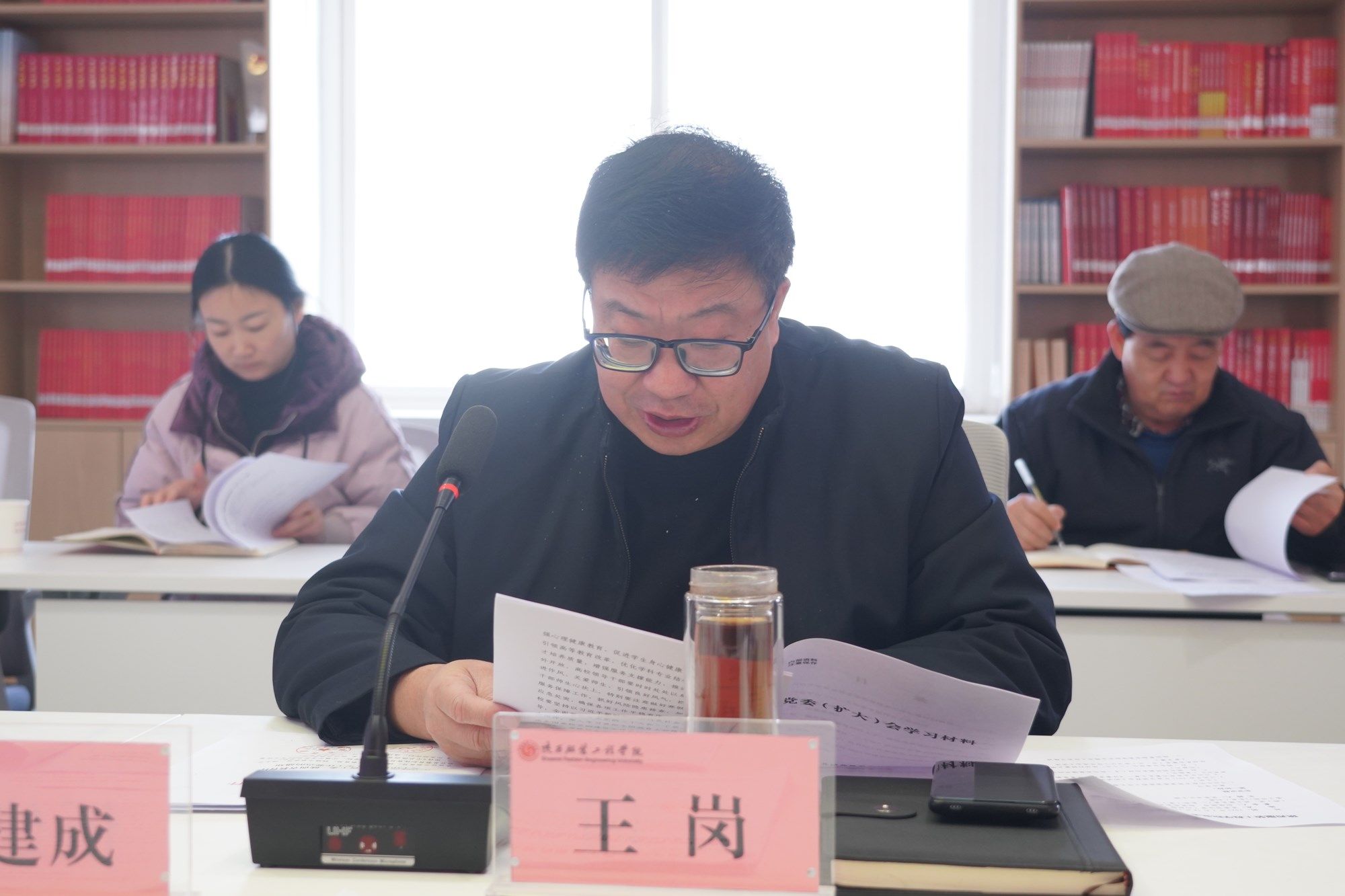 会议传达贯彻全省学校安全稳定工作培训会议精神、高校抓党建述职评议考核工作会议精神、学习贯彻省委教育工委、省教育厅2025年工作要点文件精神。