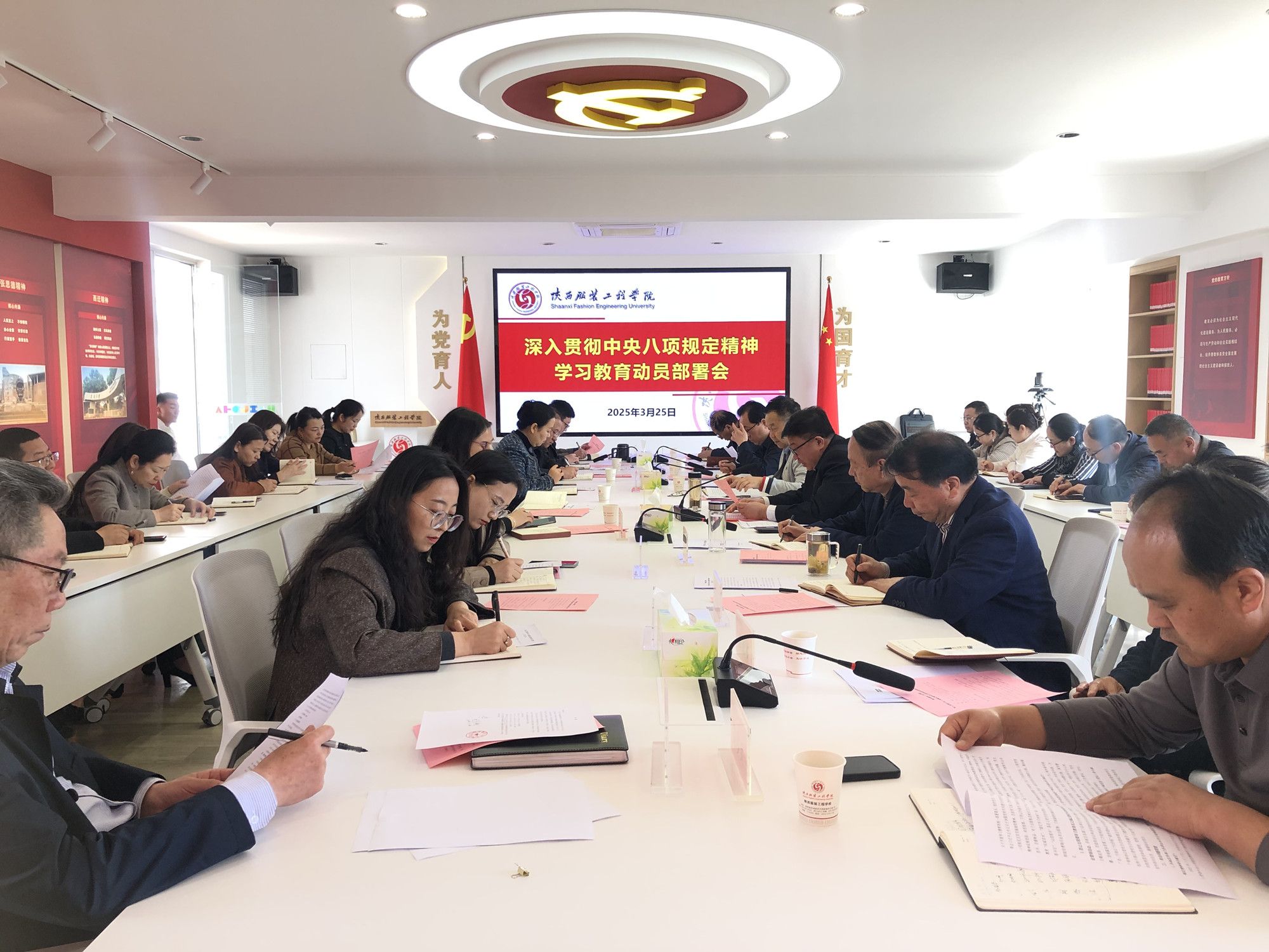陕服新闻网讯(伍建成)为认真贯彻落实中共中央、陕西省委、省委教育工委、省教育厅关于开展深入贯彻中央八项规定精神学习教育的部署和要求,3月25日上午,学校在行政中心党委会议室召开深入贯彻中央八项规定精神学习教育动员部署会,学习传达中省相关会议精神,就在全校开展学习教育进行动员部署。全体校级领导、校党委委员、纪委委员,各学院(部)党、政主要负责人,各处(室)、直属单位负责人,党委工作部门负责人、机关各党支部书记参加会议。党委书记、督导专员王岗主持会议并作总结讲话。