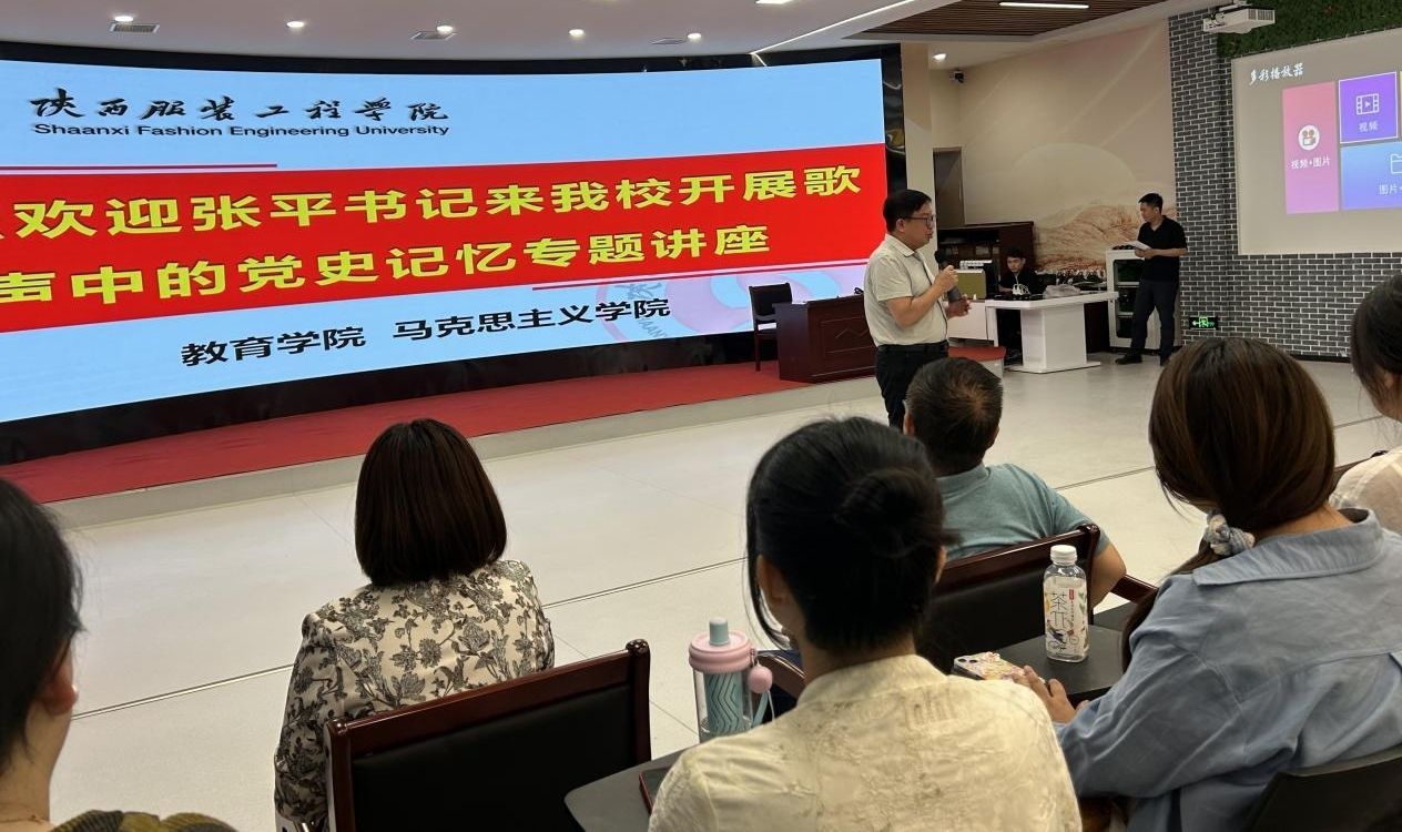 张平曾与多位陕西电视台的播音主持艺术家及青年主播同台献艺,并在多所高校和企业干部培训中留下了深刻的讲演印记,赢得了广泛赞誉和一致好评。张平回顾了西安工程大学与陕西服装工程学院的合作历程,以《我爱我的祖国》歌曲为引,展开了富有教育意义的歌声中的党史学习教育。