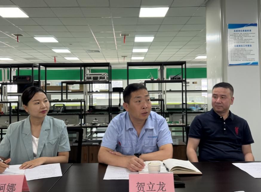 陕西诺兰创智科技有限公司董事长张方方致了欢迎辞。他对企业在科技创新、人才需求及校企合作方面的规划和典型项目作了介绍。他表示,作为西北地区智能制造领域企业,诺兰创智始终以“创新驱动、技术立企”为核心,期待与高校携手培养符合产业需求的复合型技术人才,看好与我校在相关领域的合作前景。总经理张军围绕行业发展趋势、企业人才需求、学生实习就业、科研项目合作等给出了探讨建议。西安创联超声技术有限责任公司总经理、陕西电子西京电气集团有限公司副总工程师贺立龙作为特邀嘉宾参与交流,他结合企业技术需求,提出“以科研项目为纽带,推动校企联合攻关”的建议。