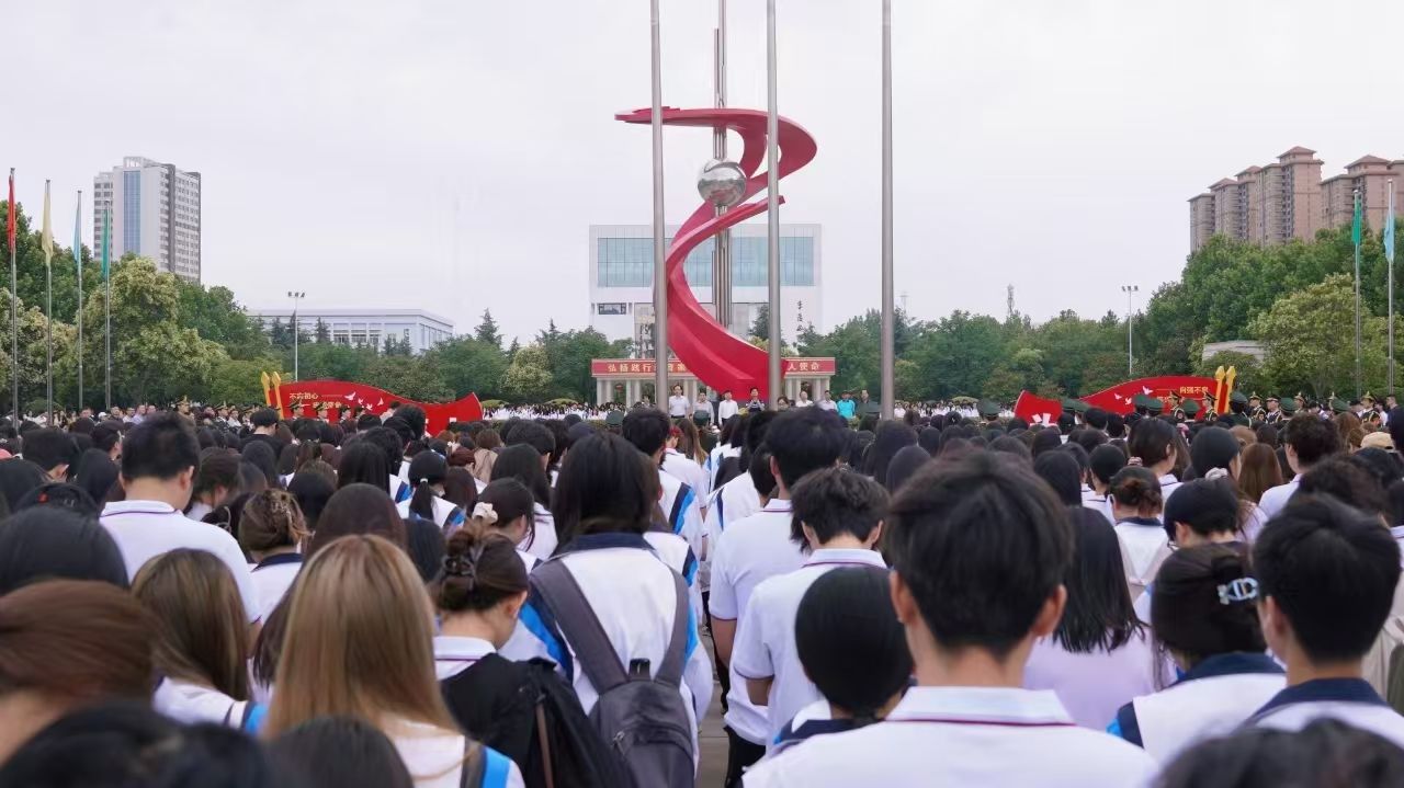 在万余名师生同唱校歌之后,升旗仪式圆满完成。