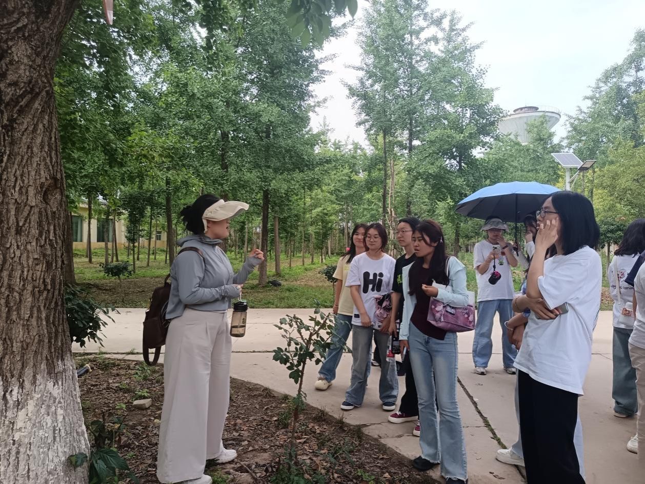 认识中药材及饮片的原植物形态特征是本次授课的核心环节。实训师生冒着高温酷暑,深入实践基地,系统全面的学习了 30 余种常见药用植物的生长环境、植株器官特征、药用价值及其在制药领域中的应用。实践学习过程中,张云鹤老师悉心讲授了植物茎、叶、花、果实、种子的结构特征等外观特性,同学们通过实地观察,将中药材及饮片的特征与原植物建立紧密关联,从而增强了对药用植物的多样性和科学分类形成了更直观的认识。