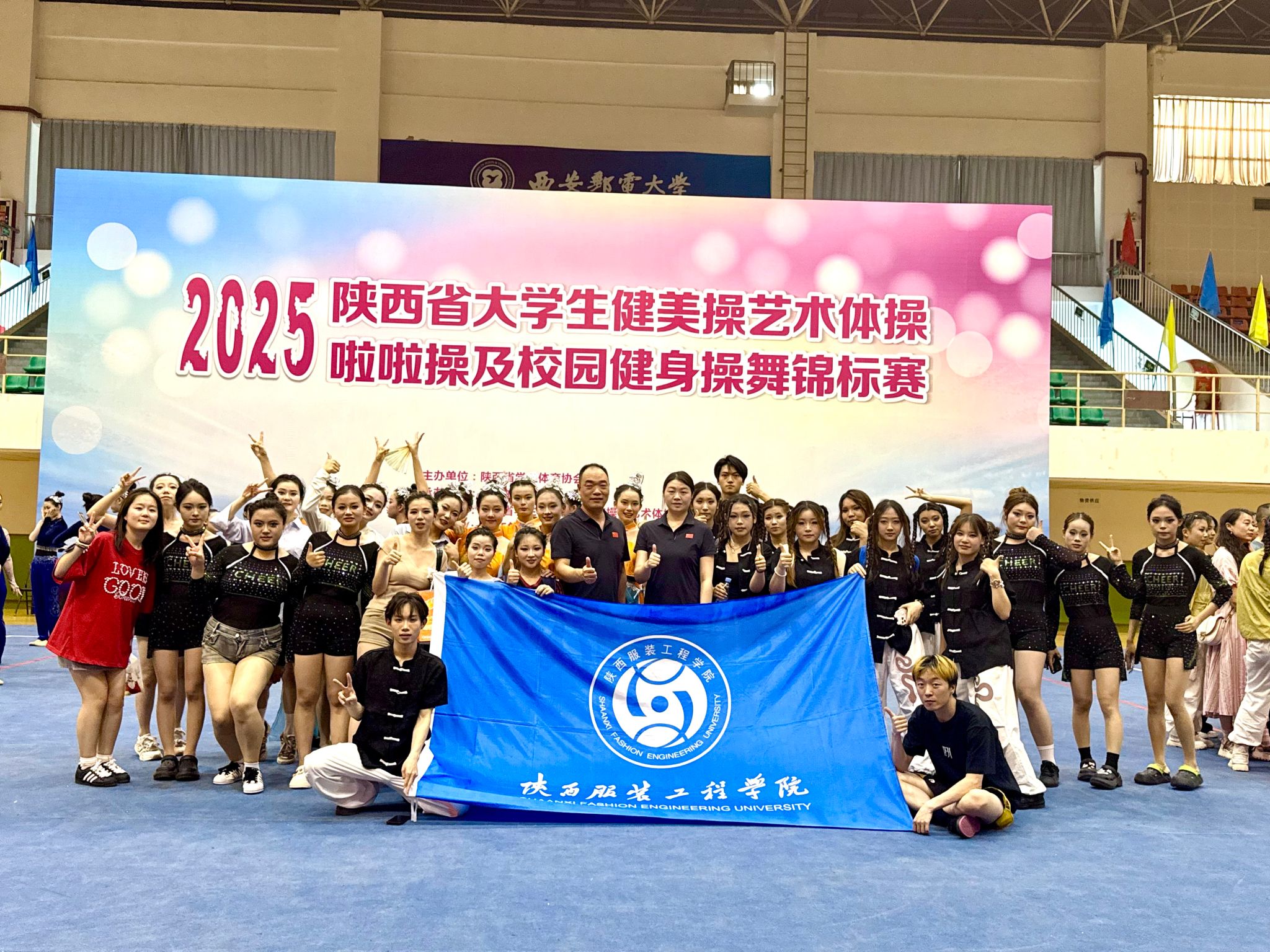 在本次比赛中,我校啦啦操队在领队(倪德财)、教练员(赵倩)的带领下,发扬“艰苦奋斗,自强不息”的陕服精神,最终获得了第二名2项,第三名1项,第四名1项,第五名1项,第六名1项,同时获得甲组啦啦操团体第七名,获得我校在该赛事的最好成绩。