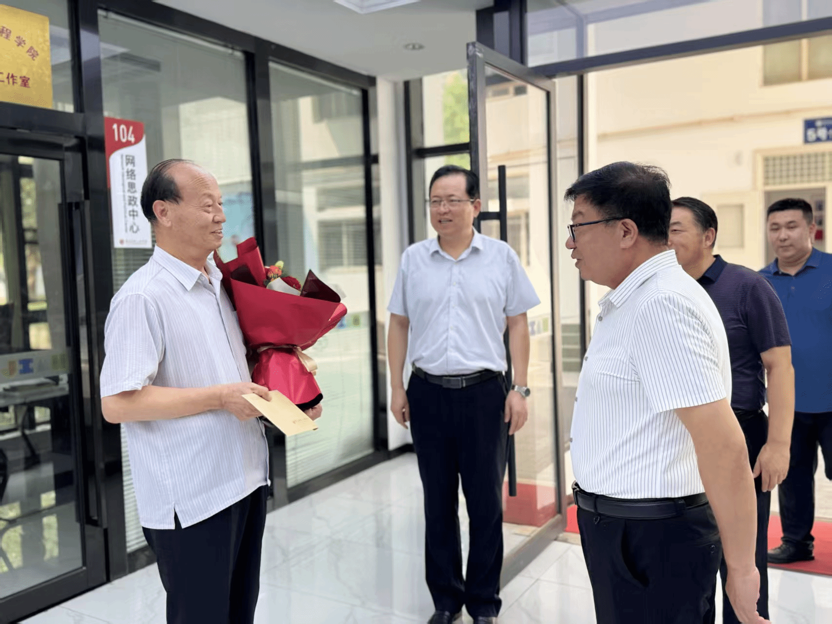 陕服新闻网讯(党委组织部)今年是中国共产党成立104周年,为弘扬党的光荣传统和优良作风,表达党组织对老党员的关心与厚爱。7月1日上午,校党委书记王岗、副书记刘继兵走访慰问了我校老党员、经济困难党员代表,为他们送去党组织的关怀和温暖,感谢他们为党的教育事业和学校建设发展作出的贡献,并向他们致以节日的问候和诚挚的祝福。