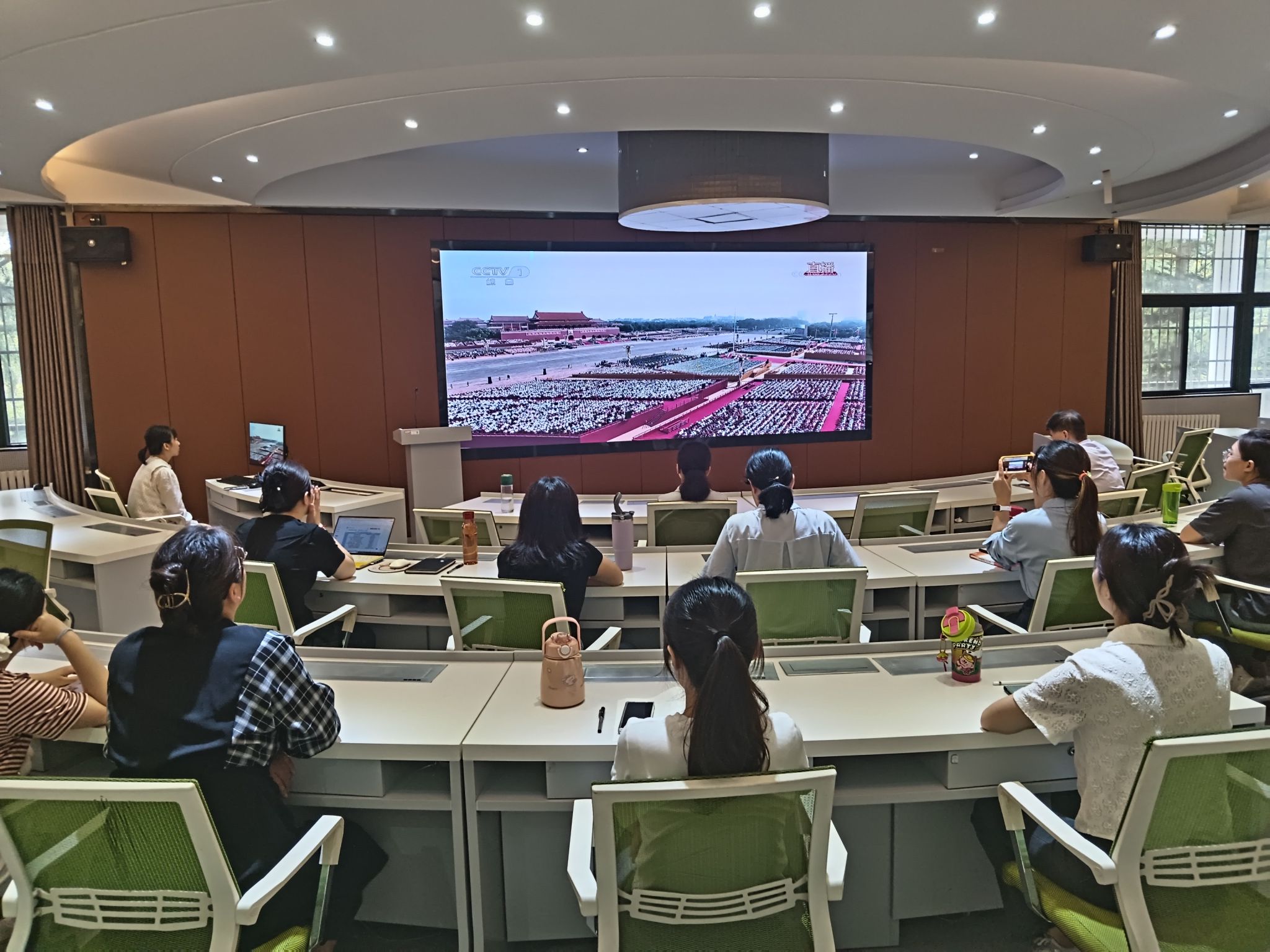 收看了纪念中国人民抗日战争暨世界反法西斯战争胜利80周年大会实况转播,聆听习近平总书记的讲话,观看了振国威、展军威的盛大阅兵式,为国家的强盛、军队的强大而自豪!我们一定要认真学习贯彻习近平总书记重要讲话精神,传承弘扬伟大爱国主义精神和抗战精神,在铭记历史中汲取奋进力量,将爱国之情、报国之志融入日常工作和生活,在学校推进立德树人工程、培育时代新人的进程中担当作为、贡献智慧与力量。